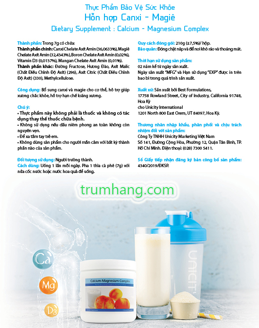- Calcium Magnesium Complex dạng bột dễ dàng pha trộn với chất lỏng và nhanh chóng hấp thụ bởi cơ thể. Đây là công nghệ mới nhất, đứng hàng đầu về nghiên cứu dinh dưỡng và phát triển. Đó là một thực tế khoa học cho rằng lượng khoáng sản hấp thu là quan trọng hơn số lượng tiêu thụ. Một khoáng chất không được hấp thu không thể nhận được vào các xương để củng cố. Vì vậy, sự hấp thụ là một cách quan trọng của đo lường lợi ích của canxi và magiê.